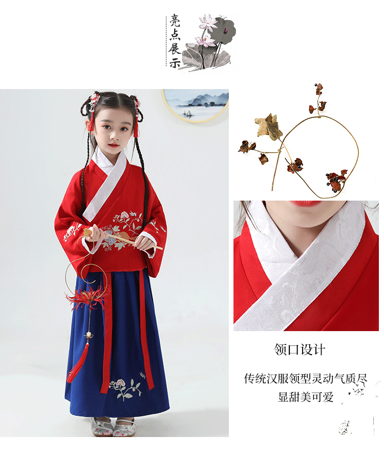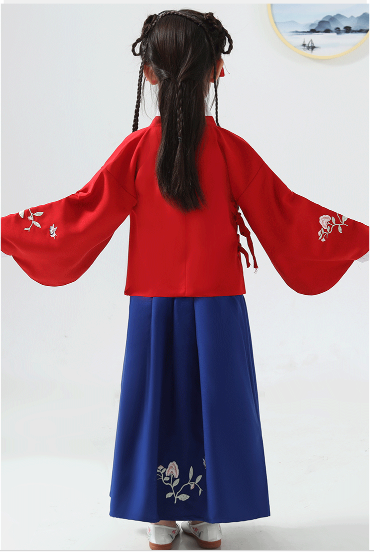兒童古裝兒童漢服女童紅色上衣藍色裙子