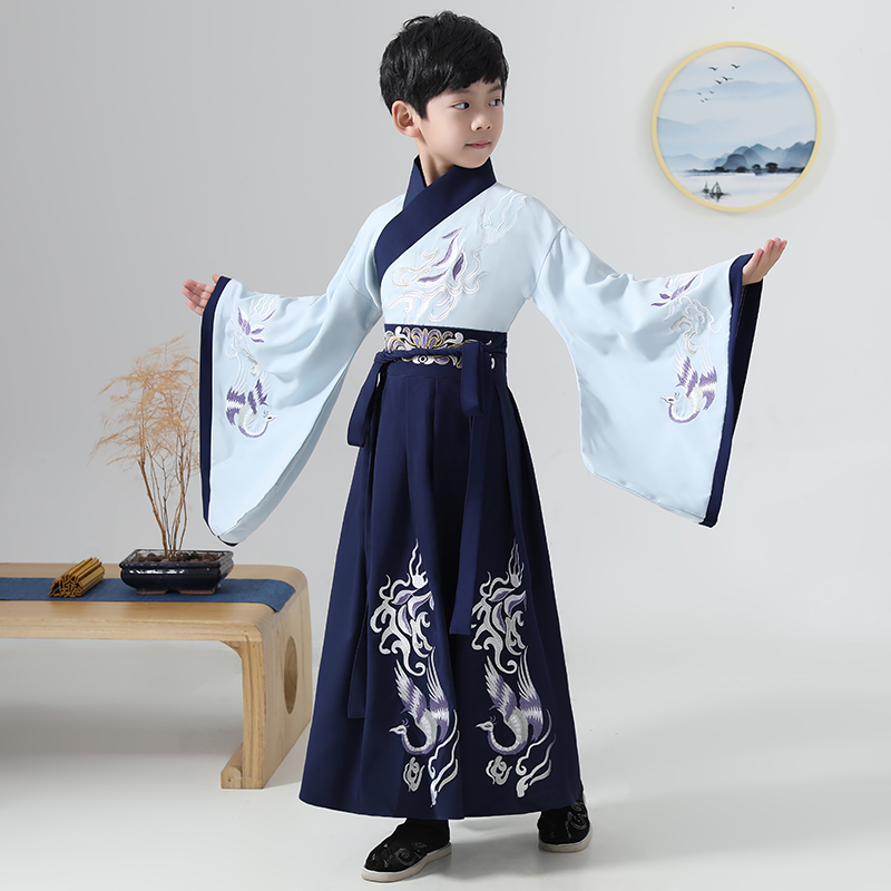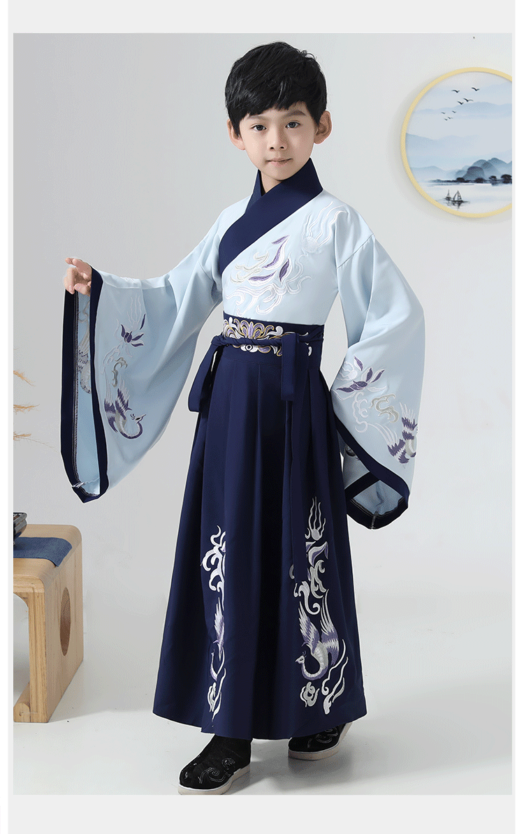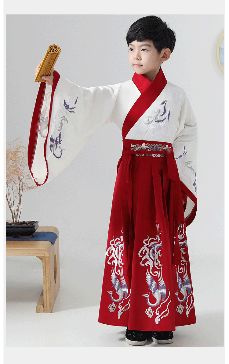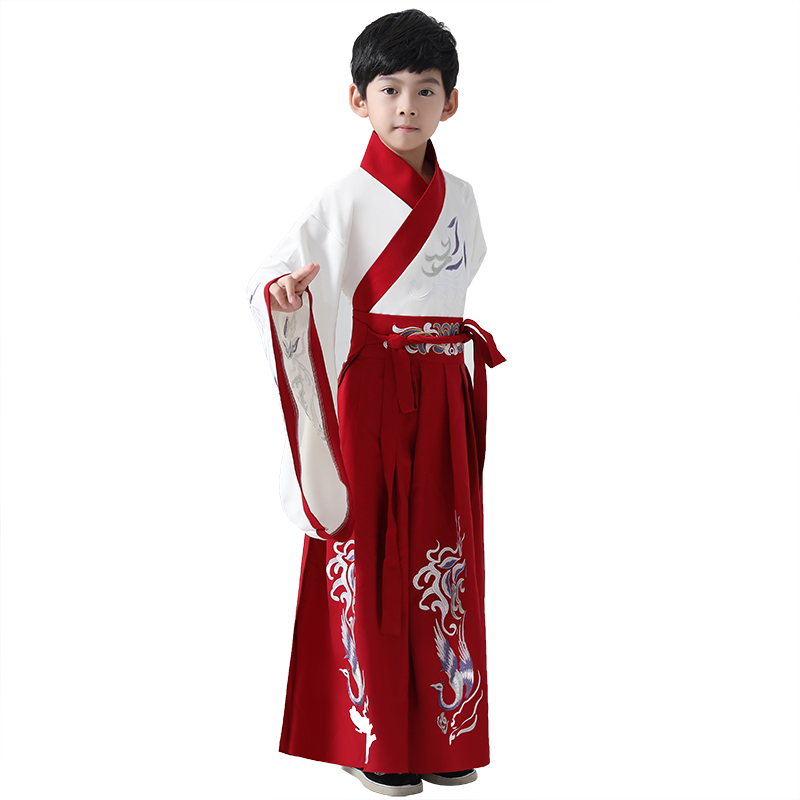 兒童古裝兒童漢服男童紅色藍色