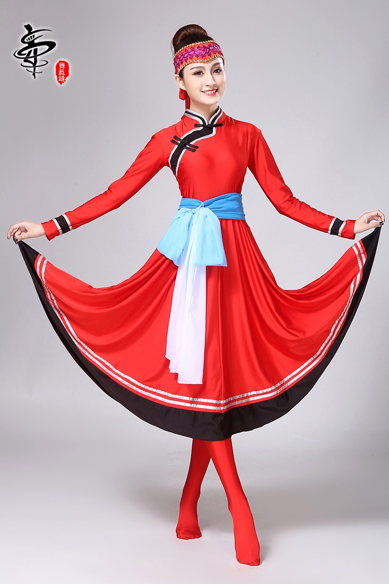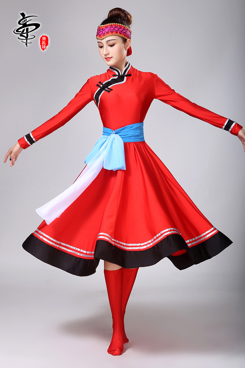 蒙古長裙舞蹈服裝紅色舞蹈服裝