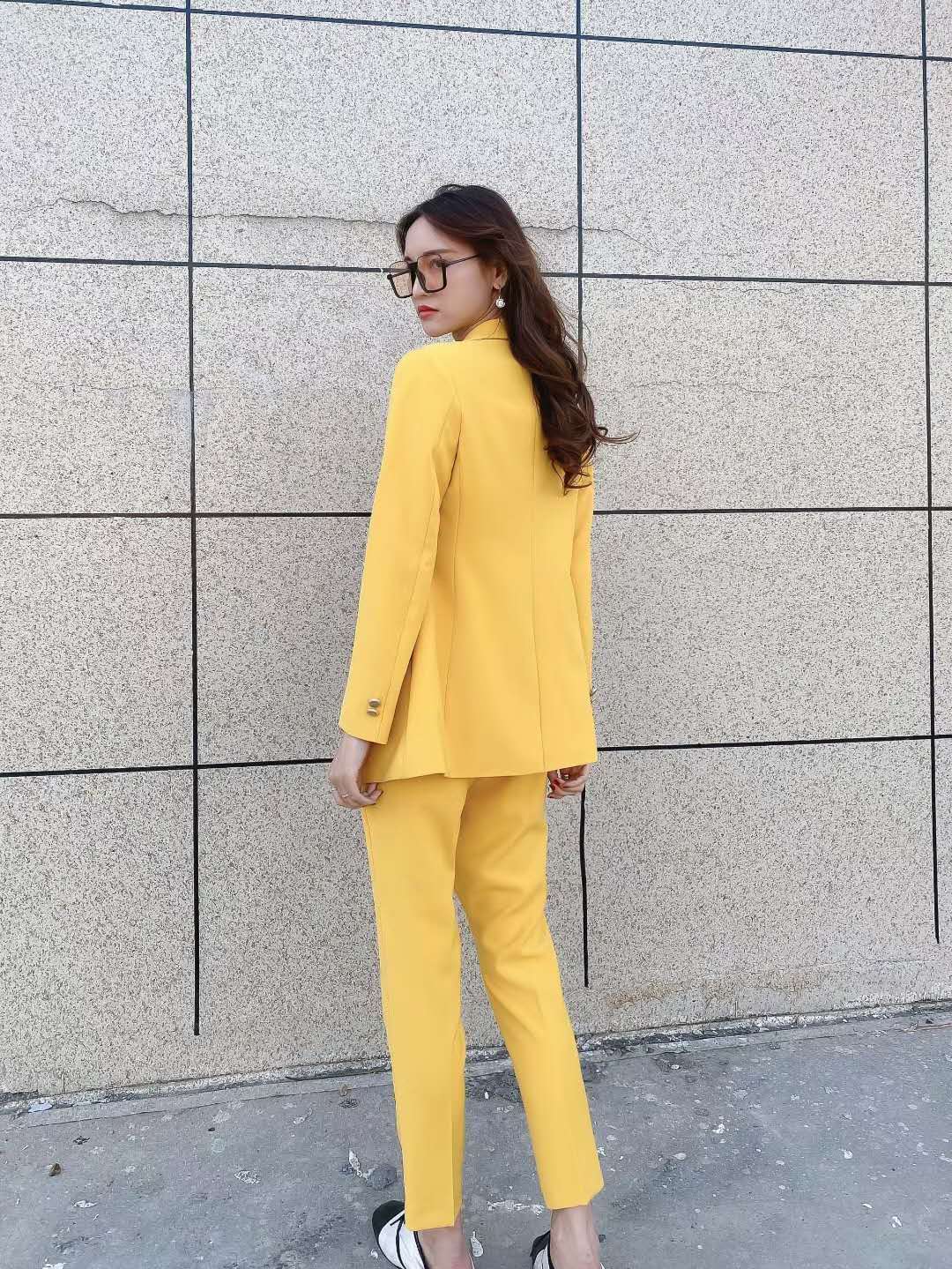 女士主持人禮服西裝職業裝彩色西裝黃色