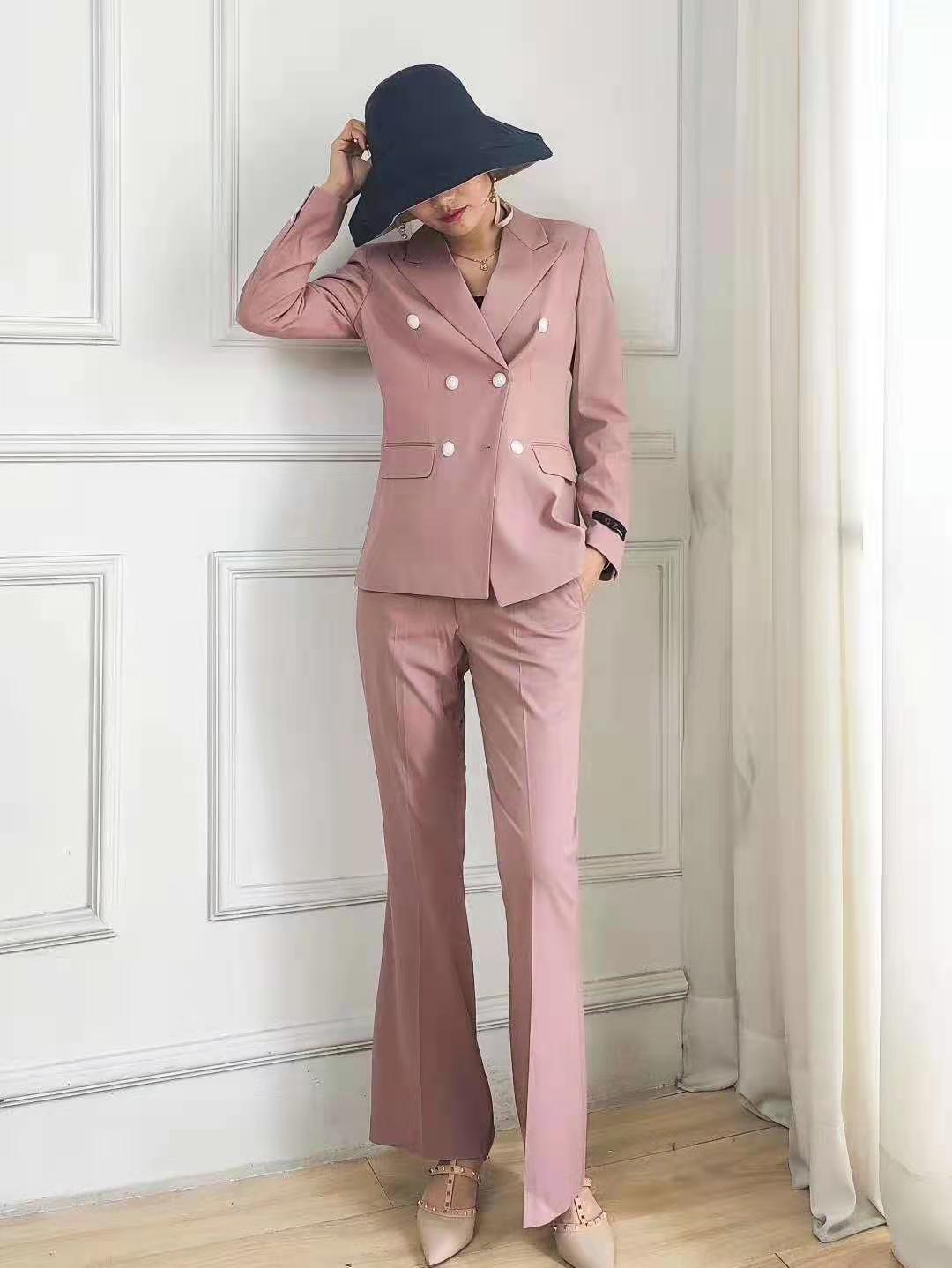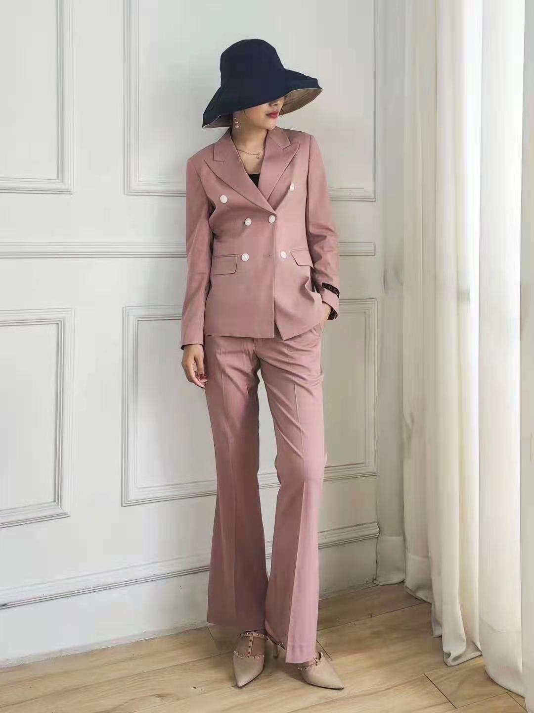 女士主持人禮服西裝職業(yè)裝彩色西裝淺粉色