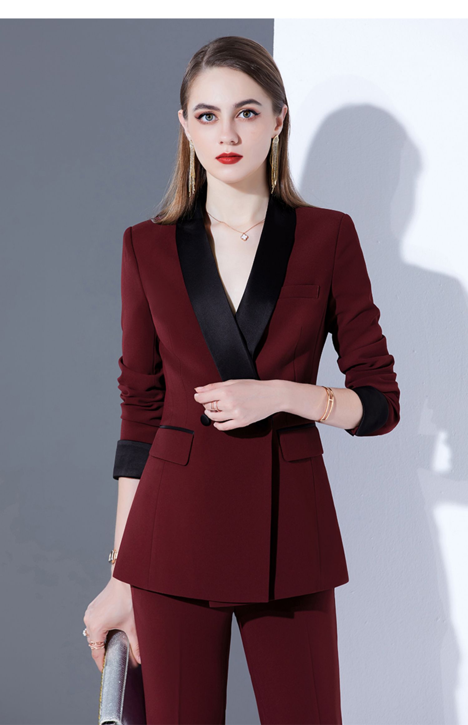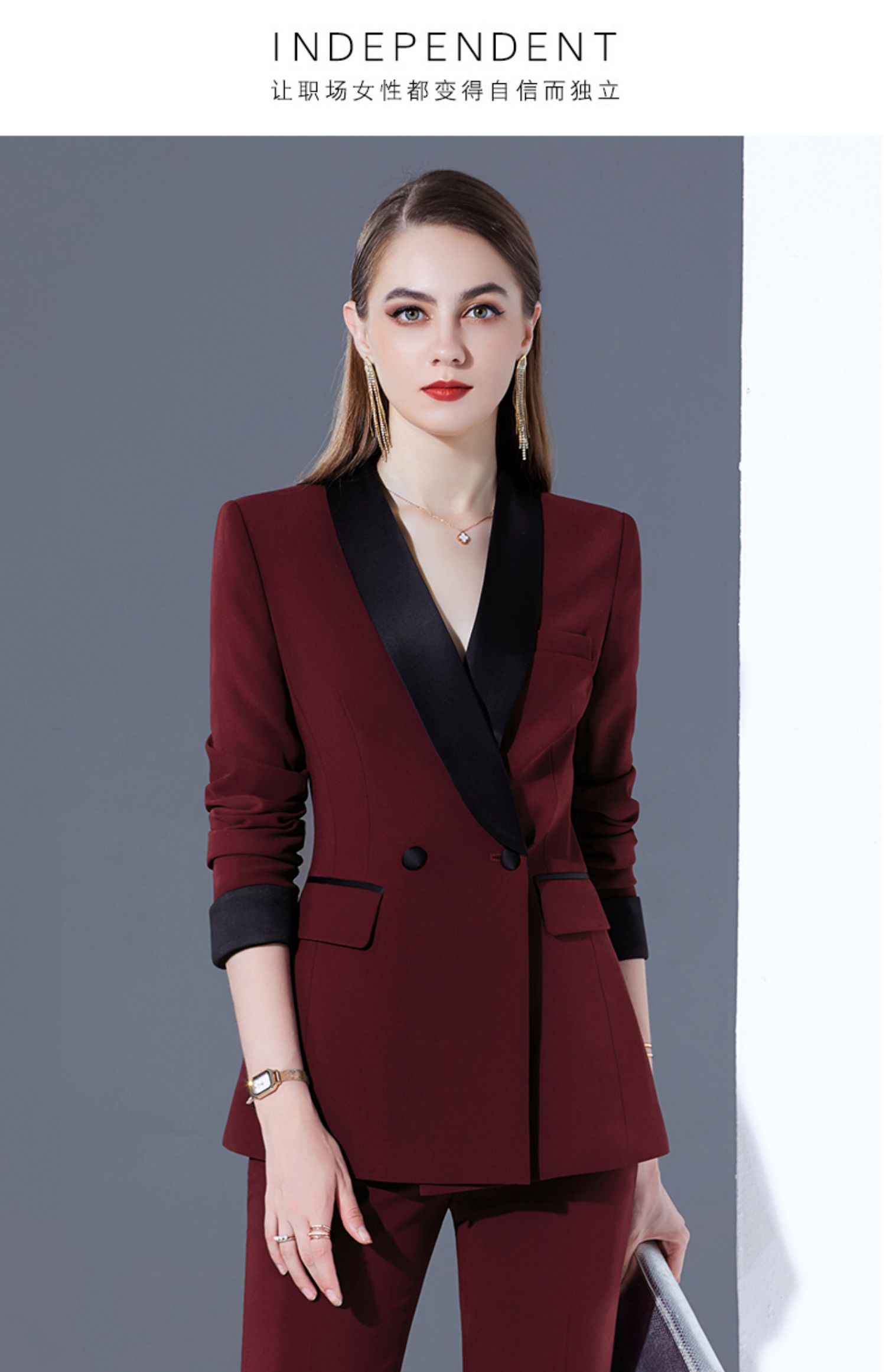 女士酒紅色雙排扣職業西裝禮服商務西裝